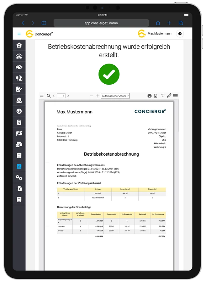 Die Nebenkostenabrechnung ist für viele Vermieter eine jährliche Herausforderung. Excel-Tabellen, komplizierte Formeln, Fehlersuche – das kostet Zeit und Nerven. Mit Concierge2 wird die Betriebskostenabrechnung zum Kinderspiel: